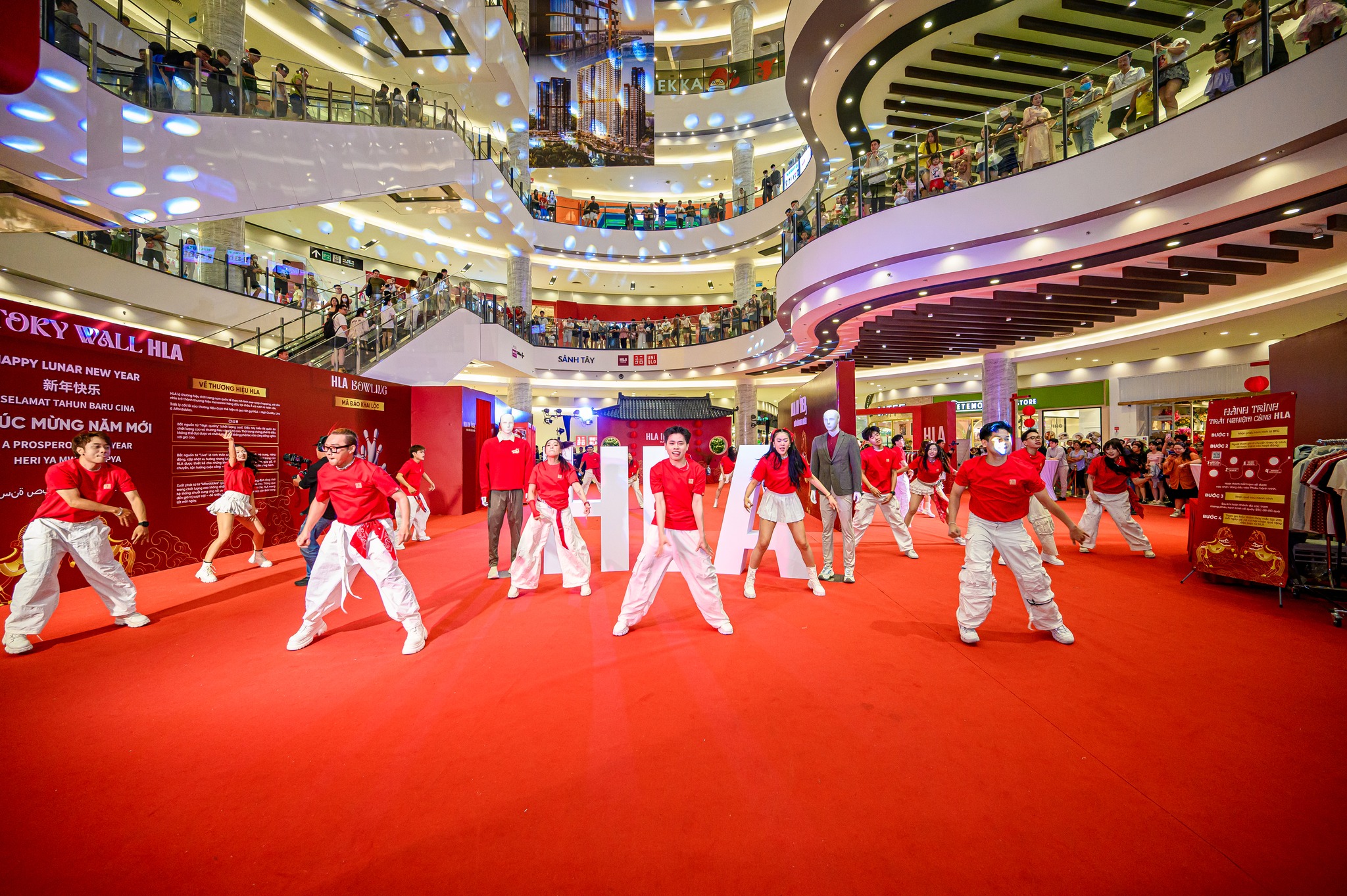 Last weekend, the West Atrium transformed into an impressive runway as HLA officially launched its Mã Đáo Khai Niên collection. The event space came alive with a stunning catwalk performance by actors Trần Ngọc Vàng and Ma Ran Đô, alongside a lineup of professional models, delivering eye-catching and energetic visuals throughout the show.