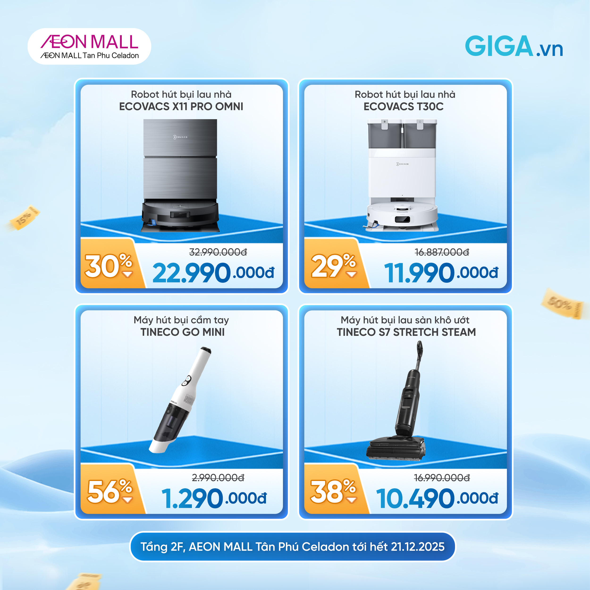 GIGA.vn sets itself apart with superior shopping experiences and dedicated after-sales service. Showrooms are designed elegantly to create unique open spaces that allow customers to enjoy a fully hands-on product experience. GIGA.vn continues expanding across premium malls, marking its presence in high-end shopping malls nationwide, especially in the AEON Mall system. Today, the 8th showroom is officially in AEON MALL Tan Phu Celadon, 2nd Floor, bringing exclusive offers from 15th December 2025 to 21st December 2025. Customers would like to contact the hotline 0965 499 920 for more details about the program.